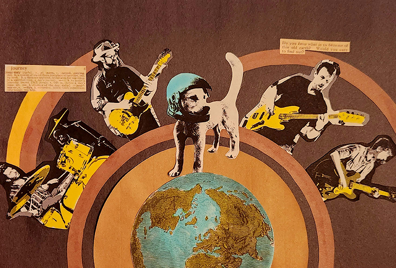The band ultimately decided that mood board 2 (with the dog wearing the astronaut helmet) aligned more with their vision , which guided further design choices.