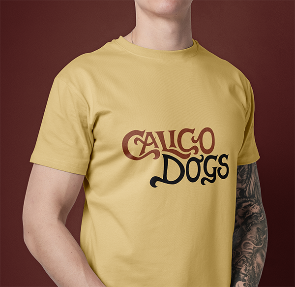 The band Calico Dogs wanted a logo that felt vintage and handmade while reflecting the blues, alternative, indie, and psychedelia influences in their music.