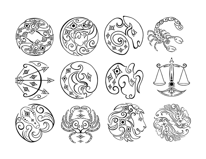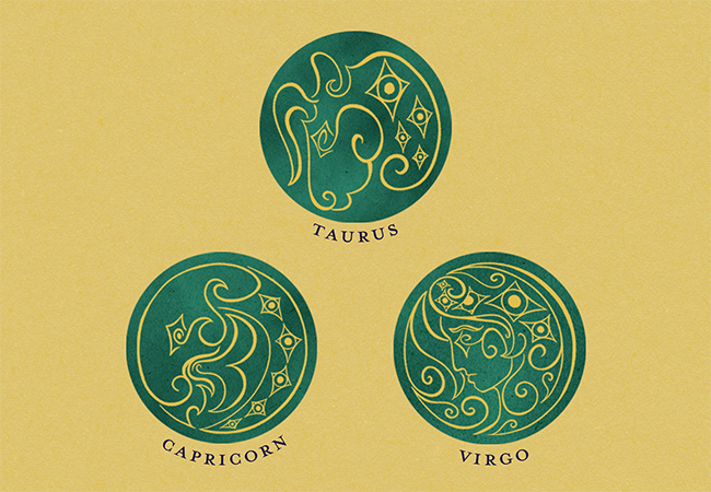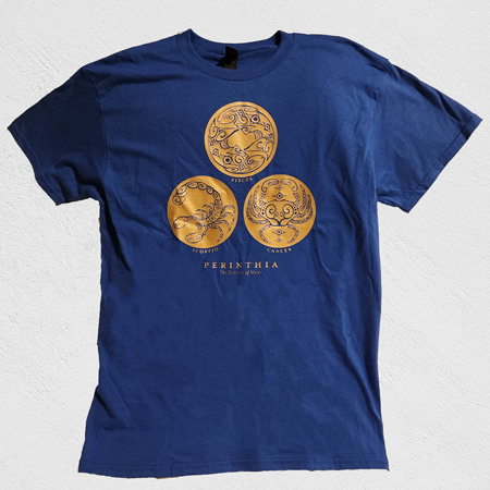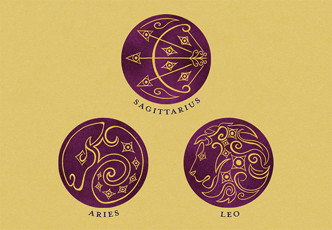 Creating the t-shirt designs was the biggest challenge of this project. Each zodiac, while confined in to a circular structure, does not take up that circle in the same way. In order to balance the designs on each shirt, I put them in to a circle and punched the zodiac design out of said circle. Then I made a triangular structure with the signs on each shirt.
