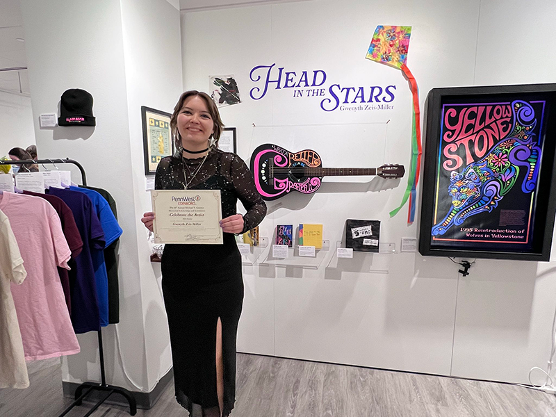 “Celebrate the Artist” honors Michael V. Gmitter, a jewelry and metals major at Edinboro University who passed away in 2006. The exhibition was established in honor of his memory, and to encourage senior art students Edinboro University to peruse their careers. I was incredibly grateful to be chosen as a finalist for the 2025 exhibition. My personal part of the exhibition was called “Head in the Stars,” and it displayed a range of my design work focused on celebrating my passions, loving myself and others, and fostering my inner child.