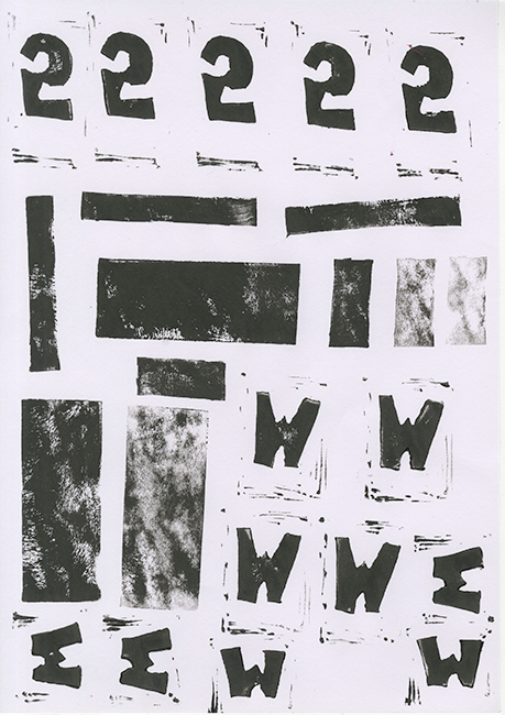 One of my favorite things about using hands-on methods is allowing the mistake-prone process of creating to influence my future design choices. For this project, the messy nature of ink printing inspired me to choose my typography to match. My headings are sans-serif, bold, and have small flaws within them to match the bold stamped characters and textured backgrounds.