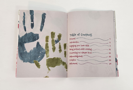 The design of this zine was created with the help of my mother and my younger sister. Together we painted our hands and stamped out handprints across paper. I then used those prints to create the design. I got my hands physically messy during this project, and it was extremely fun to do so!
