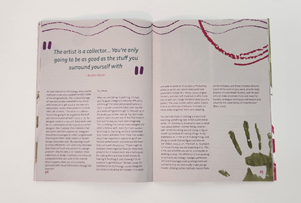 I often find myself joking with anyone who asks about what I do that I am a graphic designer that hates working on the computer. This made me think about why I have such an aversion to working digitally, and also why designers are confined to their computers rather than analog methods. Throughout my thesis, I argue that designers should work with their hands more within the design process because it engages a person’s inner child, helps the designer be present while creating, and ultimately creates work that connects on a deeper, more human level. I also explored why tactile methods are becoming less common.
